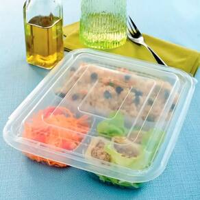 A Bandeja de Refeição Galvanotek G323 com 3 divisórias e capacidade de 810ml é ideal para armazenamento, transporte e consumo de refeições de forma prática e segura. Produzida em material transparente de alta qualidade, permite ótima visualização dos alimentos e pode ser utilizada tanto no freezer quanto no micro-ondas, oferecendo versatilidade no dia a dia e em serviços de delivery. Seu design com três compartimentos facilita a separação dos alimentos, mantendo sabor e textura. O pacote contém 100 unidades.