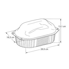 Com dimensões internas de 23 x 14 x 12,7 cm e dimensões externas de 26,5 x 18,2 x 13,1 cm, a embalagem foi desenvolvida para acomodar perfeitamente frangos assados inteiros, mantendo a temperatura por mais tempo e garantindo segurança no manuseio. Além disso, possui fechamento firme que facilita o transporte, evitando acidentes durante a entrega ou consumo.