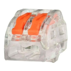 100x Conector Elétrico Emenda Rápida Alavanca Borne 2 Fios 100 x Conector Alavanca 2 Vias Todos os nossos conectores possuem certificação UL e CSA, garantindo assim que cumprem rigorosos padrões internacionais transmitindo segurança, tranquilidade e qualidade para os consumidores. Projetado para emendas de fios rígidos ou flexíveis, este é o conector mais indicado quando se quer emendar uma quantidade grande de fios. Para fazer a emenda, basta levantar a alavanca, inserir os fios desencapados nos furos do conector e fechar a alavanca. Existem conectores de 2, 3 e 5 furos Vantagens - Conecta e Isola ao mesmo Tempo - Economia de Tempo - Não enferrujam - Segurança - Versatilidade - Reutilizáveis - Revestido com Material Retardante de Chamas Aplicações - Iluminação de fabricação - Residencial - Caixas de junção - Paineis de controle - Sistemas de segurança/alarme - Sistemas de pré-fiação - Retrofit de iluminação Dados Técnicos - Tipos de Fios: Flexíveis, Semi-Rígidos ou Rígidos - Tensão Máxima : 400VAC - Corrente Máxima: 32A - Condutores: Flexível 0,08 - 4mm, Rígido e Semirígido 0,08 - 4mm - Temperatura : 105º C Conteúdo da Embalagem: Caixa com 100 unidades Marca: Decorarmais