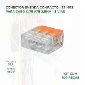 100X Conectores Emenda Compacto 3 Fios 2,5Mm - Cmk221-613