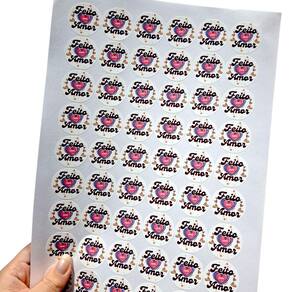 108 Adesivos Vinil p/ Embalaguens Frase Feito com Amor 3 cm