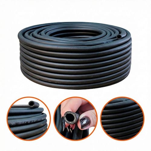 Produzida em PVC com reforço em borracha e trama de nylon, essa mangueira garante maior durabilidade, flexibilidade e segurança durante o uso, reduzindo riscos de desgaste precoce, torções ou vazamentos.