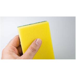 10un esponja multiuso dupla face espuma lavar louças cozinha Descrição e características Esponja de limpeza com duas faces distintas: uma em fibra sintética com material abrasivo para limpeza mais intensa e outra em espuma de poliuretano, ou , para limpeza de superfícies sensíveis, ambas sobrepostas e firmemente unidas. Indicações e instruções de uso Adequada para limpeza geral em cozinhas industriais, restaurantes, indústrias de alimentos, hotéis, hospitais, escritórios, entre outros. O lado verde é eficaz na remoção de sujeira mais resistente, enquanto o lado amarelo é ideal para remover impurezas leves em itens como porcelanas e vidros. Pode ser utilizada em a palhas de aço e escovas na remoção de sujeira. Recomenda-se lavar as esponjas em água corrente durante o uso. Aconselha-se o uso de detergente para dissolver gorduras e sujeiras mais aderentes. Após o uso, remover o excesso de água e armazenar em local apropriado. Atenção ao usar em superfícies sensíveis para evitar riscos. Ean: 7908076236381