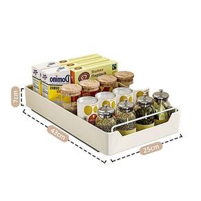Organize sua cozinha de forma prática e eficiente com o Armário Deslizante Prateleira Organizadora Gaveta Prático. Com dimensões de 43 cm de comprimento, 22 cm de largura e 7 cm de largura, este organizador é ideal para otimizar o espaço em armários e gavetas, permitindo que você mantenha seus utensílios e ingredientes sempre à mão.