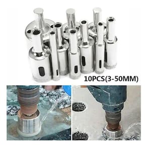 Kit Brocas Diamantadas 10x Porcelanato 3-50mm Furar Vidros Marmore Ceramica - 10 pcs pisos paredes Espelho