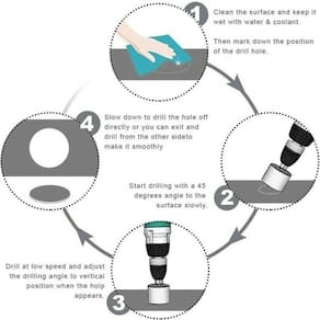 Comece seu buraco diagonalmente, faça um rastreamento redondo e, em seguida, segure a furadeira reta.