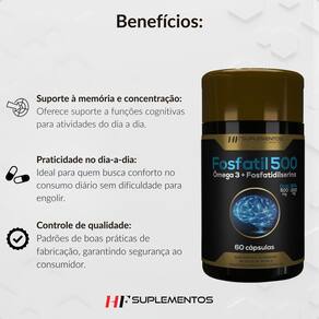 Através deste anúncio, você está adquirindo 10 dez potes de fosfatil 500 ômega 3 + fosfatidilserina 60caps hf suplementos.
