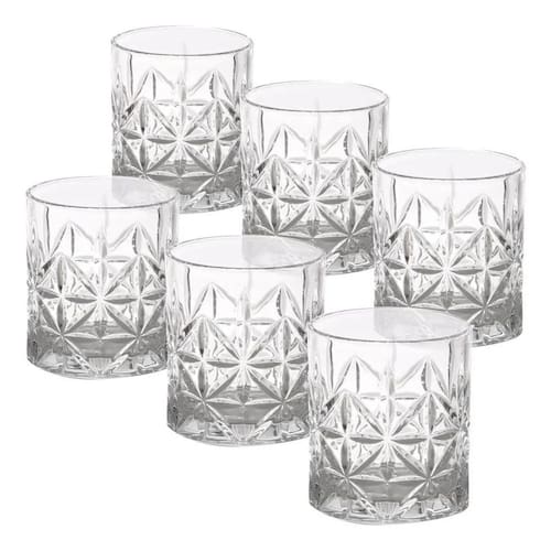 10X Jogo 6 Copos Baixos De Vidro Lapidado - Whisky, Água, D