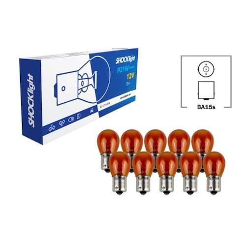 lâmpada - 1 polo / 12v / 21/5w / ba15s - shock light - sl-121141 voltagem: 12v conector: 1 polo watts: 21/5w base: ba15s cor da luz: amarelo cor da lampada: ambar aplicável na iluminação de seta pisca / ré. Embalagem com: 10 lampada ambar 1 polo 12v 21/5w 1141a ba15s
