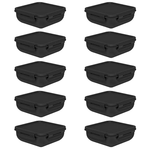 - 10 Marmita Hermética OU Quadrada Bicolor Preta Fechada