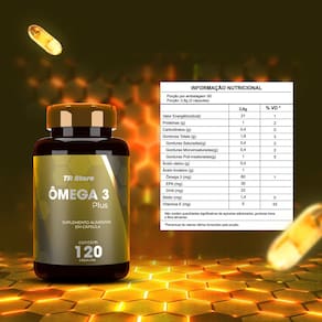 Suplemento alimentar em cápsulas ômega 3 plus.