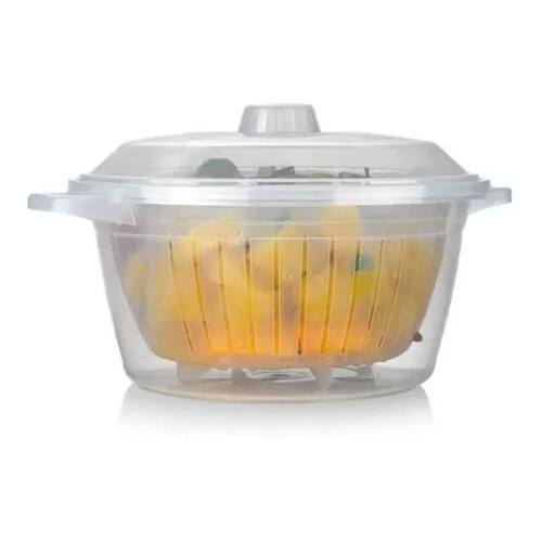 Panela com cesto para legumes, capacidade de 2,6L, ideal para uso em micro-ondas.