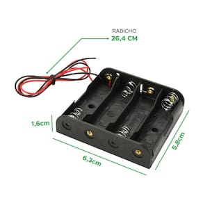 Aumente o desempenho energético dos seus projetos com o suporte para 4 pilhas aa em . Com capacidade para acomodar até quatro pilhas aa, este suporte é fabricado em plástico durável, garantindo resistência e proteção. Com a opção de ligação em série, você pode obter uma saída de 6v, oferecendo a tensão necessária para alimentar dispositivos eletrônicos diversos. Sua disposição em permite a soma das tensões das pilhas, mantendo-as organizadas e seguras. Acompanhado por cabos de ligação, este suporte proporciona praticidade e flexibilidade em suas aplicações. Especificações técnicas: Suporte 4 pilhas aa - preto Marca: Não Informado Ean: 7899744018401