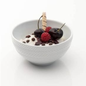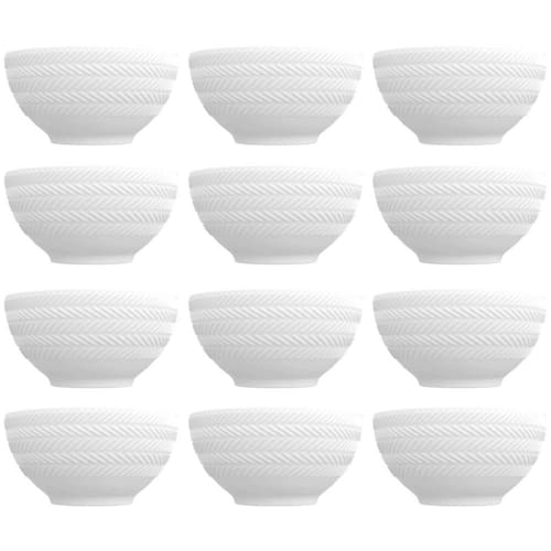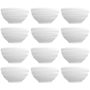 12 Bowls de Porcelana Germer 400ml Branco com Relevo Chevron Cumbuca para Petiscos Caldos Sobremesas