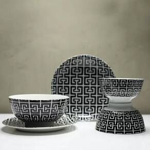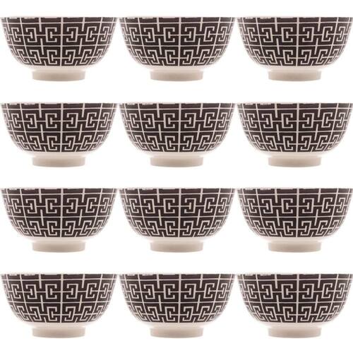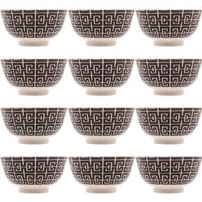 12 Bowls de Porcelana Lyor Sobremesa Cumbucas 410ml Decoradas Egypt Pretas.