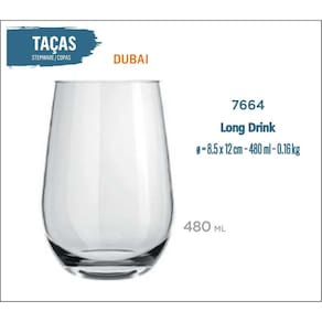 Copo Dubai 480ml - Long Drink, Tubo, Drink, Coquetel, Frisante, Cerveja, Champanhe, Espumante, Suco, Água, Refrigerante