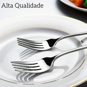 Doze Garfos de Aço Inox de Mesa América Bar Restaurante Buffet Garfo com dentes polidos na parte interna, para proporcionar maior conforto no uso, com formato apropriado para a boca e bordas arredondadas. acabamento brilho e fosco. próprio para uso diário combina com qualquer ambiente.