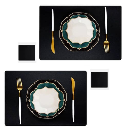 12 jogo americano couro impermeável limpa facil para mesa Cor: preto Tamano: 43x30 Jogo americano couro retangular + porta copos