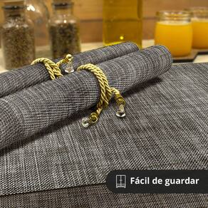Esse Jogo Americano possui linda trama metalizada proporcionando um excelente efeito visual à mesa e combina com diversos tipos de louças e ambientes. Feito com material de alta qualidade, ele é muito fácil de limpar proporcionando praticidade para o dia a dia.