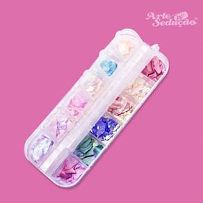 Enfeites indicados para a decoração, alongamento e encapsulamento de unhas naturais ou artificiais. A madrepérola é uma opção popular para quem deseja criar um visual sofisticado com efeitos diferentes e elegante nas unhas, especialmente em ocasiões especiais.??O kit inclui cores vibrantes que trazem uma aparência moderna, criativa e ousada às unhas.?Acompanha caixa de plástico com divisórias e tampas para melhor conservação e organização.