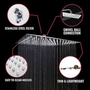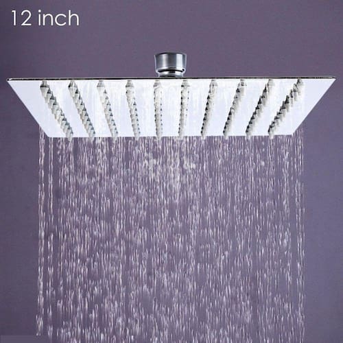 Estilo Chuva: Com boa cobertura para absorver todo o corpo, proporcionando a relaxante experiência de banho. Aparência de fantasia em forma de quadrado retângulo de 12 polegadas, Unibody polido, ultra fino. : Esprema os mamilos de borracha para remover calcário ou sedimento. Muito fácil de desobstruir.