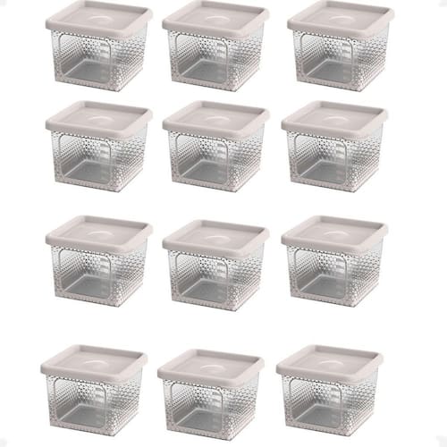 12 pote para alimentos transparente prisma 430ml com tampa Pote quadrado p potte - ad0088 x005fx000d
