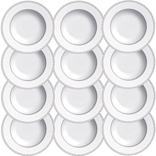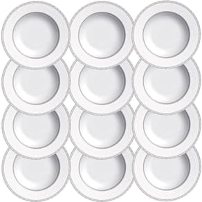 CONTEÚDO DO JOGO DE PRATOS FUNDOS TRAMONTINA GABRIELLE 12 Pratos fundo Tramontina Gabrielle em porcelana decorada 23 cm. Ref. 96011010.