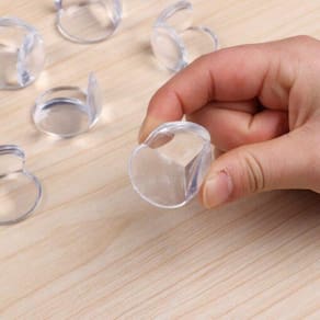 Material de silicone flexível e durável Design arredondado que amortece impactos Fácil aplicação com fita adesiva dupla face inclusa Transparente discreto e compatível com qualquer decoração Ideal para mesas, estantes, armários, cômodas e outros móveis Mais proteção para bebês e crianças em fase de exploração