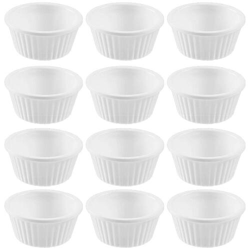 Os ramekins da Coza são um conjunto de 12 mini potes projetados para servir geleias, molhos, chimichurri, molhos para saladas, vinagrete ou outros condimentos de sua escolha. Cada ramequim tem 30ml de capacidade que o torna ideal para porções individuais. Os ramekins são perfeitos para uso tanto em casa como em ambientes profissionais, como restaurantes, bares e hotéis. O material dos ramekins plásticos o tornam duráveis e resistentes ao uso frequente, além de serem livre de BPA. Apresentam um design clássico e detalhes canelados se adaptando a várias configurações de mesa. Ean: 7798138032675