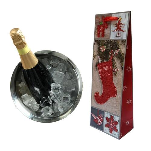 Estampas temáticas de natal com cores vibrantes, detalhes em glitter e um acabamentos sofisticados da alça em fita. Além de proteger a bebida durante o transporte, a sacola agrega um toque de sofisticação e cuidado ao presente, tornando a experiência de dar e receber ainda mais especial.