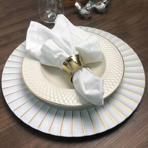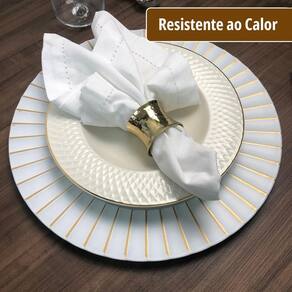 Com design moderno e elegante o sousplat cumpre uma das principais regras de etiqueta, que é nunca deixar a mesa desguarnecida durante a troca de pratos. PRINCIPAIS VANTAGENS - Material de alta qualidade - Resistente - Ótimo acabamento - Serve de apoio para os pratos - Evita respingos de comida na toalha ou no jogo americano - Evita que o prato fique escorregando quando a pessoa corta os alimentos - Demarca lugares à mesa - Prático e Versátil - Design moderno e elegante - Combina com diversos tipos de louças e ambientes LIMPEZA FÁCIL: - Pano úmido. - Lavar com esponja macia com água e sabão neutro. CONTÉM: 12 peça s MATERIAL: PVC DIMENSÕES: 33cm de diâmetro Um produto Idealiza Comercio de Utilidades Marca: Não Informado