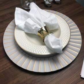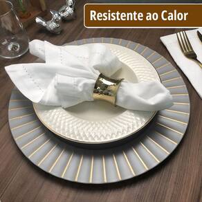 Com design moderno e elegante o sousplat cumpre uma das principais regras de etiqueta, que é nunca deixar a mesa desguarnecida durante a troca de pratos. PRINCIPAIS VANTAGENS - Material de alta qualidade - Resistente - Ótimo acabamento - Serve de apoio para os pratos - Evita respingos de comida na toalha ou no jogo americano - Evita que o prato fique escorregando quando a pessoa corta os alimentos - Demarca lugares à mesa - Prático e Versátil - Design moderno e elegante - Combina com diversos tipos de louças e ambientes LIMPEZA FÁCIL: - Pano úmido. - Lavar com esponja macia com água e sabão neutro. CONTÉM: 12 peça s MATERIAL: PVC DIMENSÕES: 33cm de diâmetro Um produto Idealiza Comercio de Utilidades Marca: Não Informado