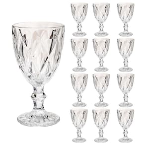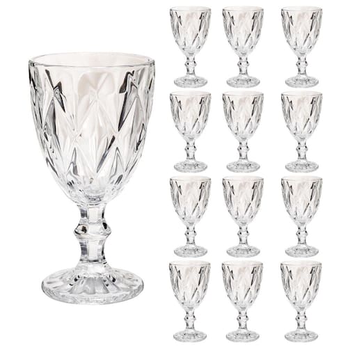 Conjunto 12 Copos Transparente Taça Diamante Agua Vinho 300ml