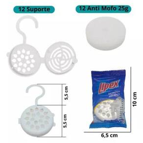 12 Un. Anti Mofo Traça Guarda Roupa Armário Mau Cheiro Lipex Desumidificador Antimofo, Guarda Roupa Gaveta Armário, Anti mofo com refil, Elimina mofo, bolor, fungos, Evita maus odores, Reduz umidade, Protege roupas, Anti traça inseto, Antitraça, Repele Espanta traça, Evita Combate traça, Protege Acaba traça Seus dias serão mais tranquilos com sua família. Nosso aparelho ajuda a acabar com o mofo e a proliferação de microorganismos como fungos e ácaros no ambiente. E ainda elimina suas chances de encontrar roupas, livros, documentos danificados pela traça. Inibi odores indesejáveis e exala fragrância suave de canela. Ele possui uma alça para pendurar conforme necessidade ou pode ser somente apoiado no local. CONTEÚDO PACOTE: 12 x Suporte para Anti Mofo Traça 12 x Refil Anti Mofo Traça 25g Marca: Não Informado Ean: 7896035403182