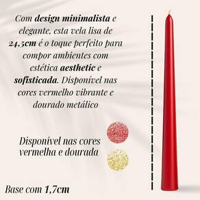 Vela Decorativa Lisa 24,5cm Cor Cintilantes: Vermelho Transforme a atmosfera do seu ambiente com nossa vela decorativa lisa, ideal para quem valoriza estilo e sofisticação nos detalhes. Com 24,5 cm de altura e acabamento cintilante nas cor vermelho, essa peça é perfeita para composições modernas, elegantes e com estética aesthetic.