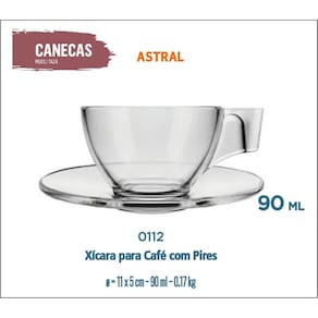12 Xícara Café Com Pires Curto Pequeno - Astral 90ml Xícara de Café com Pires Pequena Expresso Curto Quentão 90ml