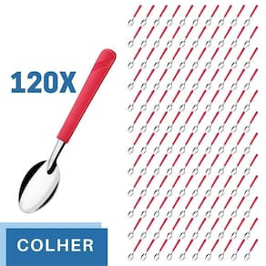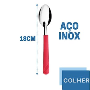 Conjunto de Colher As colheres de mesa da linha Luna são um conjunto elegante e funcional para qualquer ocasião. Com um cabo vermelho vibrante feito de plástico de alta qualidade, essas colheres são confortáveis de segurar e fáceis de identificar em meio a outros utensílios de mesa. O aço inox das colheres garante que elas permaneçam brilhantes por um longo tempo, enquanto o design elegante torna as colheres uma adição atraente à sua coleção de utensílios de cozinha.