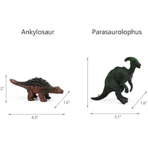 12pcs Figuras de dinossauro para meninos brinquedos de dinossauro realistas Estatuetas animais para crianças Dinossauro Pack Cake Toppers Decoração - Os brinquedos de dinossauro para crianças são Certificados EN71, Certificado ASTM e HR4040 Certificado, 100% seguro para crianças. - Figuras de animais de dinossauro plástico são bem pintadas, fortes e não se desintegrariam na água, resistentes por muito tempo de uso. - O conjunto de figuras de brinquedo de dinossauro é um grande presente para crianças, meninos, meninas, amantes de animais, confeiteiro. - Este conjunto de dinossauros do mundo jurássico é lindo para jogar ou exibir. Use para amas, brincadeiras de carro, topper de bolo ou decoração de festa para chá de bebê, decoração de Tema Jurássico e muito mais. - Atenção: É possível que os dinossauros não possam se levantar por causa da deformação da exão no trânsito. Por favor, mergulhe-os em água quente e ajuste ligeiramente as pernas. E então eles podem se levantar bem. Pacote Incluem: 12pcs Dinossauros (Comprimento x Largura x Altura) 1 x Dilophosaurus, tamanho em 6,3 x 1,4 x 3,9 polegadas, 2 x Tyrannosaurus, tamanho em 5,1 x 1,6 x 3,5 polegadas, 1 x Triceratops, tamanho em 3,9 x 1,2 x 2 polegadas, 1 x Velociraptor, tamanho em 2,8 x 1,2 x 4,7 polegadas, 1 x Pachycephalus, tamanho em 3,1 x 1,5 x 4,7 polegadas, 1 x Diplodoco, tamanho em 5,1 x 1,4 x 3,5 polegadas, 1 x Espinossauro, tamanho em 4,7 x 2 x 2,8 polegadas, 1 x Anquilossauro, tamanho em 4,3 x 1,6 x 2 polegadas, 1 x Stegosaurus, tamanho em 4,3 x 1,2 x 2,8 polegadas, 1 x Parasaurolophus, tamanho em 3,1 x 1,6 x 4,3 polegadas, 1 x Oviraptor, tamanho em 4,3 x 2 x 3,1 polegadas.