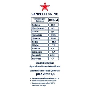 12x Água Mineral Italiana SAN PELLEGRINO com gás 505ml Água de perfil aromático, discreto e efervescência delicada. Ideal para ser servida com vinho tinto. Reverenciada como o Champagne das águas minerais, a água italiana S. Pellegrino é conhecida em todo o mundo como simbolo de vida italiano (Nazionalitá). Sua fonte está localizada a 70 km de Milão, na cidade de S.Pellegrino Terme, região da Lombardia, norte da Itália. Começou a ser engarrafada em 1899 e décadas depois vem se consolidando como a água preferida dos grandes Chefs e Sommeliers do mundo, além de ser parceira dos melhores prêmios de gastronomia do mundo. Com sua perlage (borbulhas) delicadas e equilibradas, acompanha e valoriza vinhos tintos e pratos a base de carne e molhos intensos. Marca: San Pellegrino