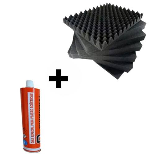Você vai receber: 14 Placas de Espuma Acústica Caixa de Ovo 50cmx50cmx2cm 01 Cola