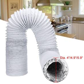 ? Material: PVC + folha de alumínio ? Cor: Branco ? Diâmetro: 4 "/4.9" /5.9" ? Comprimento: 4.92 / 6.56 / 9.84 / 16.4 / 19.68 / 26.25ft ? - Este produto pode ser dobrado a 360 ° e livremente esticado.? - Com alta flexibilidade, resistência ao atrito e resistência à corrosão ácida ? - Para drenagem, umidade, poeira, gás de alta temperatura, poeira e assim por diante