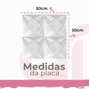 Tamanho de cada placa: 50x50cm Área de cobertura de cada placa: 0,25m São necessárias 4 placas para render 1 metro quadrado.