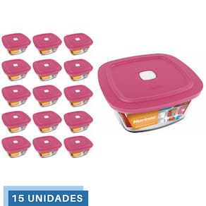 Pote De Vidro Quadrado Com Tampa Marinex 500ml 15 unidades