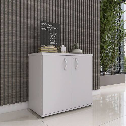 Organize seu espaço com praticidade e estilo! Este armário possui tampo robusto de 2,5cm com acabamento em fita ABS de 0,1cm, garantindo durabilidade e sofisticação. Com gabinete em MDP de 1,5cm, proporcionando versatilidade para armazenar documentos, livros e outros itens essenciais.
