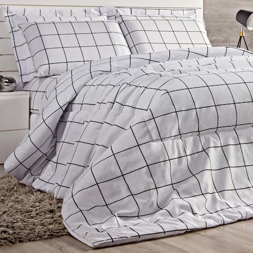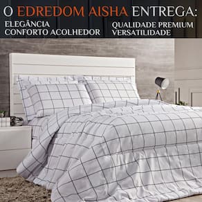 Cobredom Cobertor Grosso Aisha King Size 100% Algodão Super Fofinha ATUAL Cores: Branca Incrível: Cobertor Grosso Aisha King Size - 100% Algodão Super Fofinho Entre no mundo do conforto absoluto com o Cobertor Grosso Aisha King Size Feito com 100% de algodão super fofinho, este cobertor vai te envolver em uma nuvem de maciez e aconchego todas as noites. Este cobertor é a escolha perfeita para quem busca o máximo de conforto. Sua textura fofinha proporciona uma sensação de abraço acolhedor, enquanto o algodão de alta qualidade garante durabilidade e resistência. Faça do seu quarto o refúgio dos sonhos com o Cobertor Grosso Aisha King Size. Desfrute de noites de sono tranquilas e revigorantes, garantindo que você acorde todas as manhãs renovado e pronto para enfrentar o dia. Embalagem contém: 01 Edredom 2,80 x 2,40 m 02 Porta Travesseiros 77 cm x 55 cm medida útil 70 x 50 cm Composição: PERCAL 180 FIOS Como devo cuidar do cobertor Recomenda-se lavar à máquina em ciclo suave, utilizando água fria e um detergente suave. Evite usar alvejantes e secar em temperatura baixa para manter a maciez do algodão. O cobertor é adequado para todas as estações Sim, o Cobertor Grosso Aisha é versátil e pode ser durante o ano todo. Seu algodão respirável mantém você aquecido no inverno e fresco no verão.