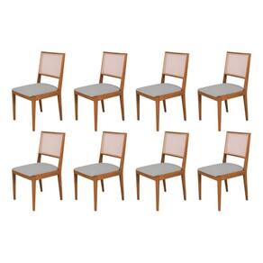 AS IMAGENS SÃO MERAMENTE ILUSTRATIVAS E PODEM SOFRER VARIAÇÕES DE COR E PEQUENOS DETALHES DE ACORDO COM O SEU MONITOR, ILUMINAÇÃO DO AMBIENTE E ATÉ MESMO A SUA PERCEPÇÃO VISUAL.Conjunto com 8 Cadeiras de Jantar Estofada Suellen Cerejeira Linho Cinza Prata