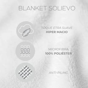 Dupla face: o cobertor sollievo possui dupla face, sendo um dos lados em textura chenille e o outro em superfície lisa. Não encolhe: fácil de lavar e secar e não encolha com a lavagem. Hipoalergênico: é naturalmente resistente à proliferação de ácaros, mofo e bactérias Alta capacidade térmica: possui um excelente desempenho térmico, sendo ideal para noites mais frias. Acabamento em debrum: conta com acabamento premium em debrum, reforçando um caimento impecável e trazendo sofisticação ao arrumar o seu quarto.