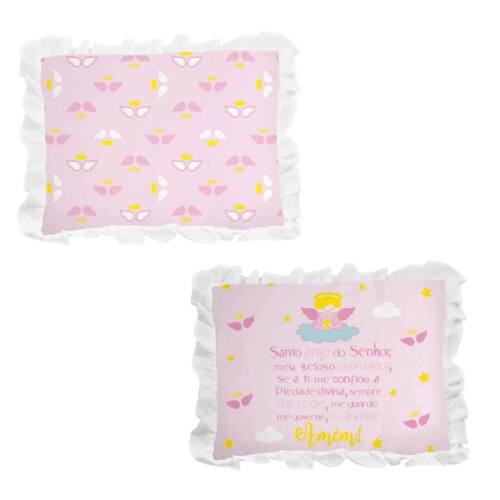 Principais Características: Contém 1 Travesseiro com babado Tamanho: 28x35cm Idade: A partir do primeiro dia de vida Tecido confeccionado em 100% algodão Enchimento 100% poliéster Cor: Rosa bebê