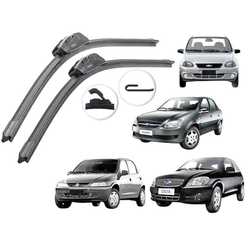 Par De Palheta Limpador De Parabrisa Celta Corsa Classic Prisma Par de Palhetas Limpador de Para-brisa Tenha o máximo desempenho e ajude na preservação do planeta, esta palheta foi desenvolvida para ter o maior desempenho e durabilidade, além de ser fabricada com borracha ecológica 100% Natural. Compátivel com os veículos: Corsa Sedan - 1994 A 2011 Classic - 1994 A 2011 Wagon - 1994 A 2011 Pick-up - 1994 A 2011 - 1994 A 2011 Celta 2001 a 2015 Prisma antigo 2006 a 2012 Montana - 2003 A 2010 Conteudo da embalagem: 2 palhetas limpador parabrisa dianteiro. Tecnologia em Silicone Premium Material de alta performance que garante um deslizamento suave e uniforme, sem ruídos ou riscos no para-brisa. Desempenho Superior em Qualquer Clima Excelente desempenho sob chuva forte, neblina ou sujeira. O silicone forma uma película que repele a água e melhora a visibilidade instantaneamente. Marca: Não Informado