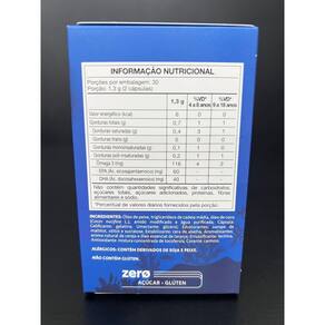 Ingredientes: Óleo de peixe, óleo de soja, aroma de cereja, óleo essencial de laranja glaceante cera de abelha, emulsificante lecitina de soja e edulcorantes sucralose e xilitol. Composição da cápsula: gelatina, amido modificado, água purificada, umectante glicerina, aroma de cereja, edulcorante sucralose e corantes carmim e vermelho 40. Não contém glúten. Alérgicos: contém derivados de soja e peixe.
